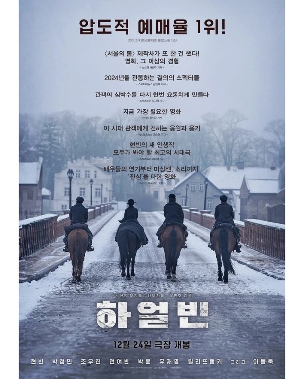 영화 <하얼빈>은 2024년 12월 24일 개봉한 대한민국의 전기 드라마로, 우민호 감독이 연출하고 현빈, 박정민, 조우진, 전여빈, 박훈, 유재명, 이동욱 등이 출연하였습니다. 이 작품은 1909년 안중근 의사의 하얼빈 의거를 중심으로, 독립운동가들의 희생과 투쟁을 그려내고 있습니다.